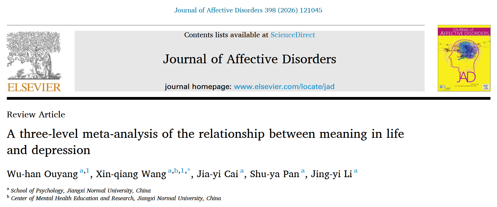 参考文献:Ouyang, W-h., Wang, X-q.Cai, J-y., Pan, Sy.,& Li, J-y. A three-level meta-analysis of the relationship between meaning in life and depression. Journal of Affective Disorders,398 (2026) 121045.